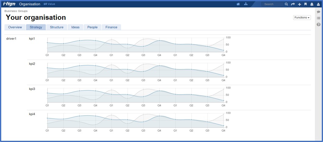 In 8.0 we brought your business groups and initiatives together into one hierarchy. In i-lign 8.1 we’ll build on this, particularly in relation to organisational level information such as strategic drivers and KPIs.